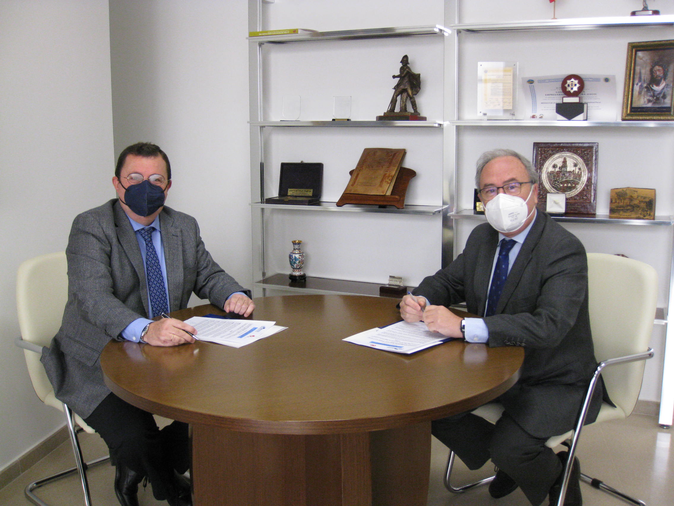 El presidente de la CECO, Antonio Díaz, y el administrador de ACP Recursos Tributarios, Pedro J. Peña han suscrito el convenio de colaboración por el que la empresa, que ofrece servicios integrales de consultoría, auditoría, asesoramiento y gestión de empresas, se incorporar en este 2021 a la Confederación de Empresarios de Córdoba en calidad de miembro asociado.