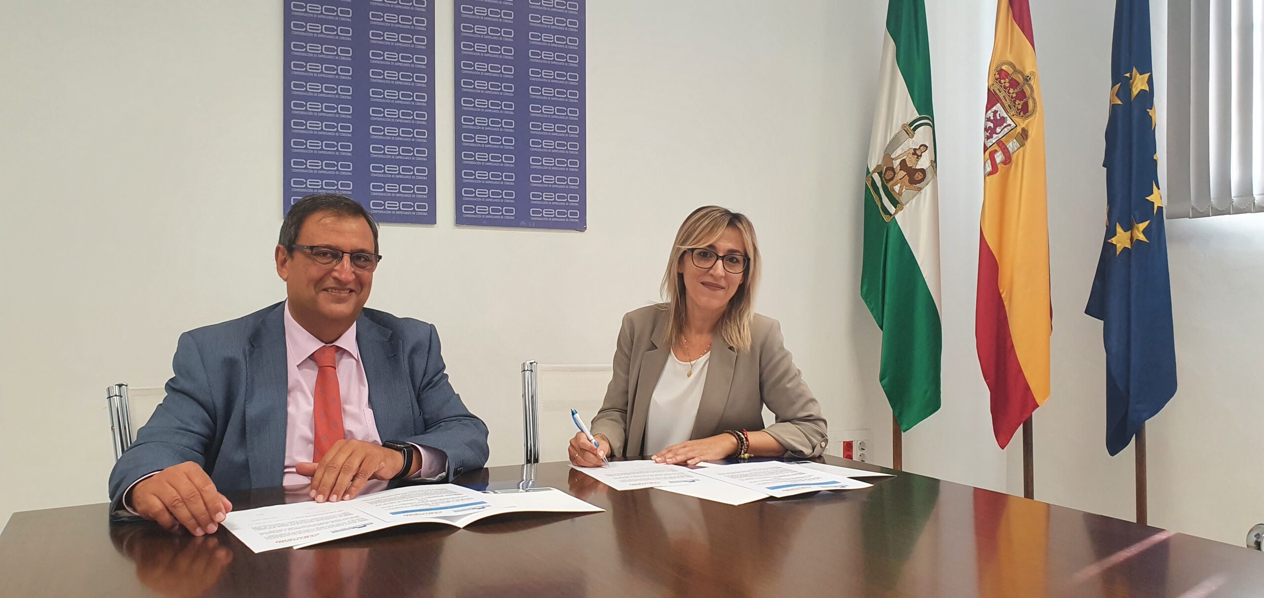 En el acto de firma participan, Teresa Caballero, gerente de Electrónica Caballero y Joaquín Gisbert, secretario general de CECO.[/vc_column_text][/vc_column][/vc_row]