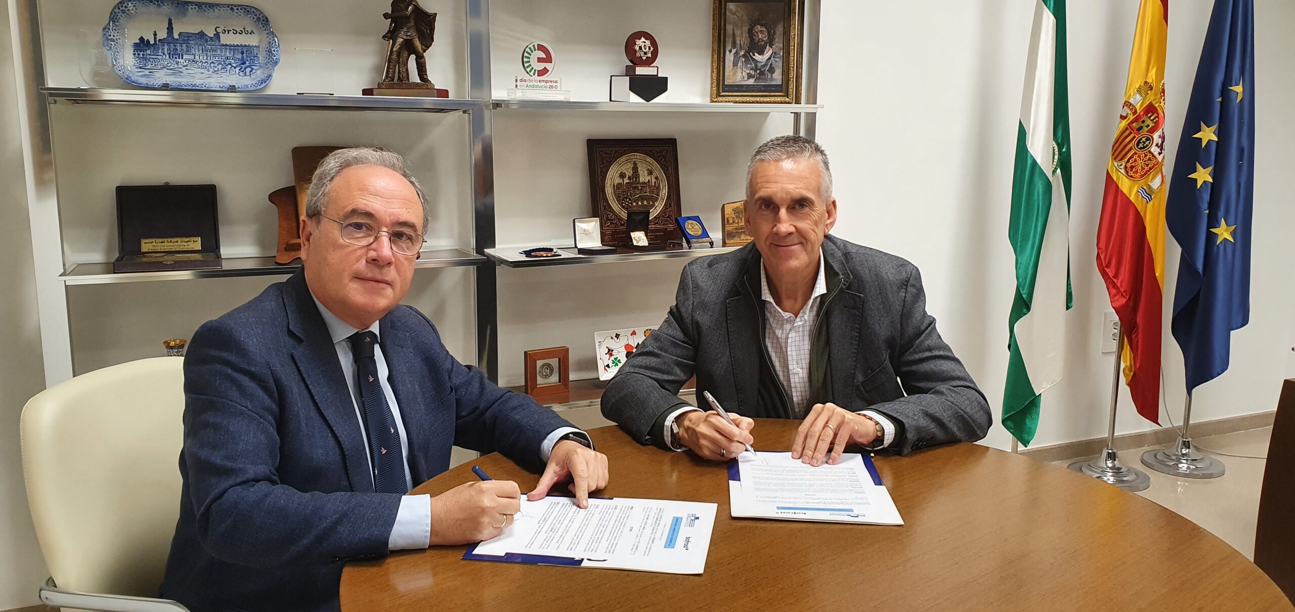 Antonio Díaz, Presidente de la Confederación de Empresarios de Córdoba y José María Fonteboa, CEO de Bofrost, han suscrito el convenio para su incorporación en calidad de miembro asociado.