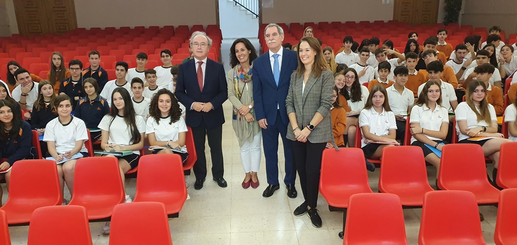 Con motivo de la celebración del I Día de la Empresa en Andalucía el presidente de CECO, Antonio Díaz, y el delegado de Educación y Formación Profesional de la Junta de Andalucía, José Francisco Viso, participan en la charla para motivar al emprendimiento que tiene lugar en el Colegio Divina Pastora de Córdoba.