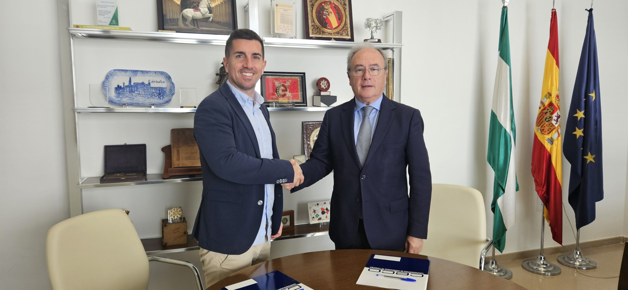 El presidente de la Confederación de Empresarios de Córdoba, Antonio Díaz, y Cristóbal González, administrador de Grupo SanCristobal, han suscrito el convenio para la incorporación de la empresa a CECO en calidad de miembro asociado.