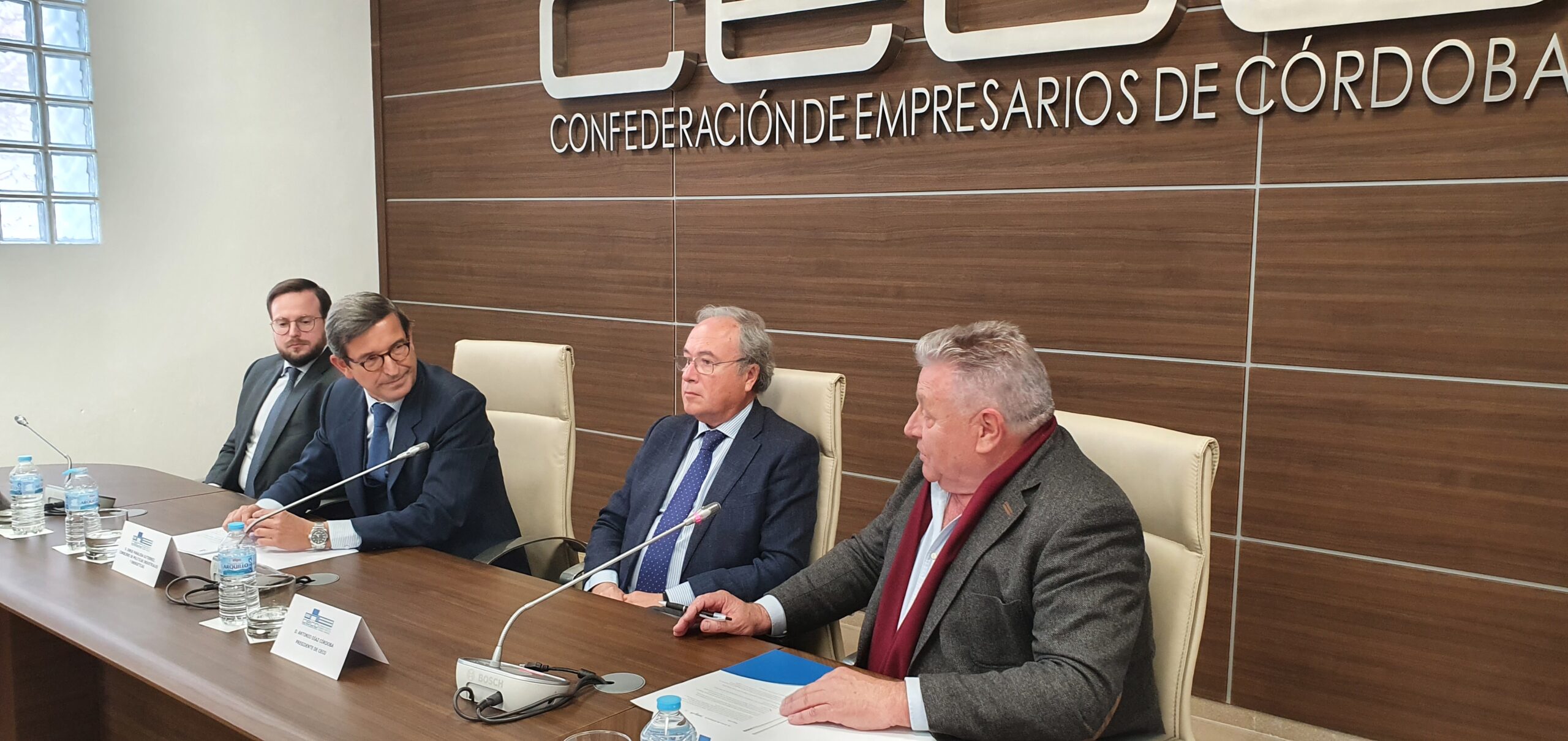 El consejero de Política Industrial y Energética de la Junta de Andalucía, Jorge Paraleda Gutiérrez, mantiene un encuentro en la sede de la Confederación de Empresarios de Córdoba con las empresas que integran la Comisión de Industria y Energía de CECO, presidida por Isidro López Magdaleno.