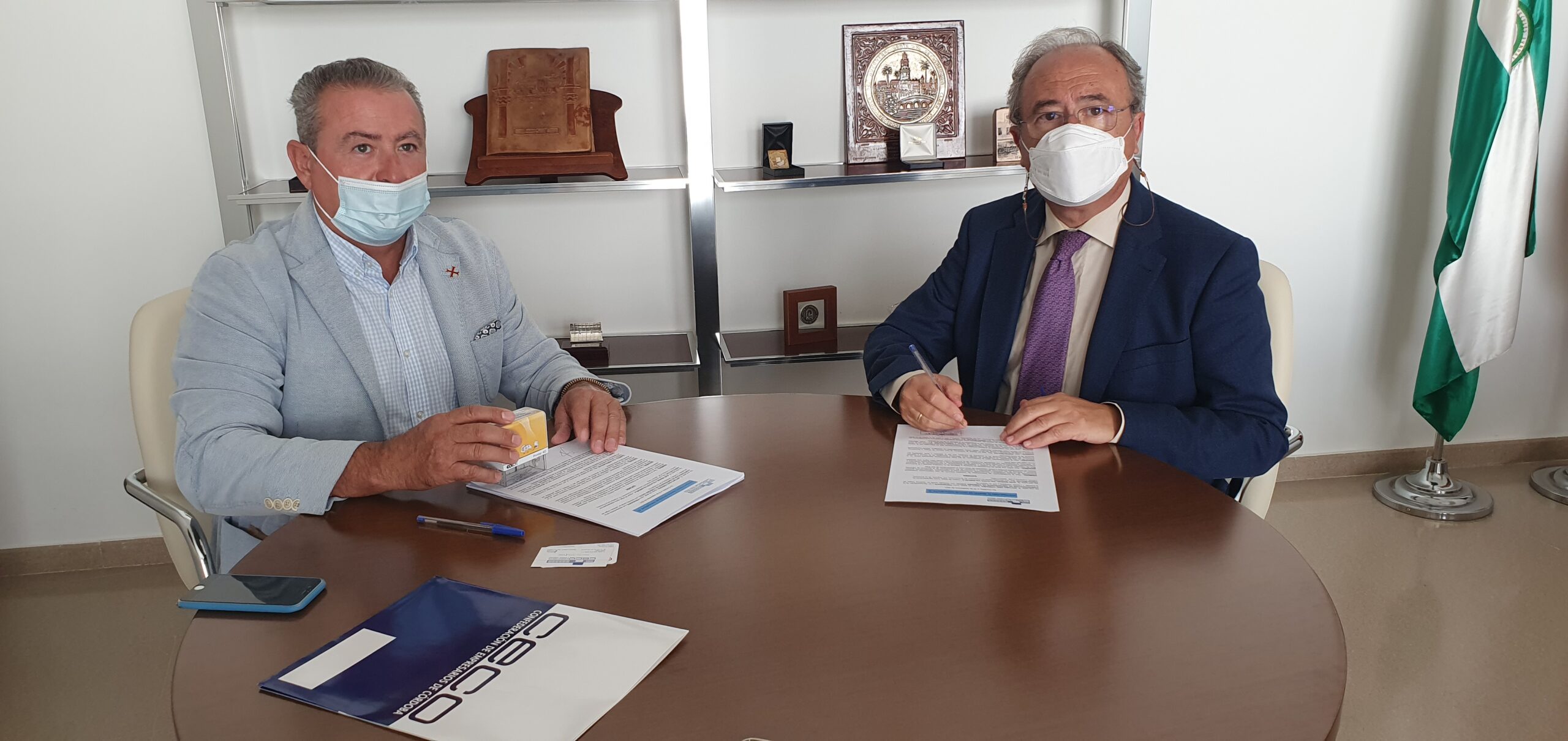 El presidente de la Confederación de Empresarios de Córdoba, Antonio Díaz, y José Manuel Palacios, en representación de HISPALISOLIVE S.L. (Aceite Los Palacios) han suscrito el convenio para la incorporación de la empresa a CECO en calidad de miembro asociado.
