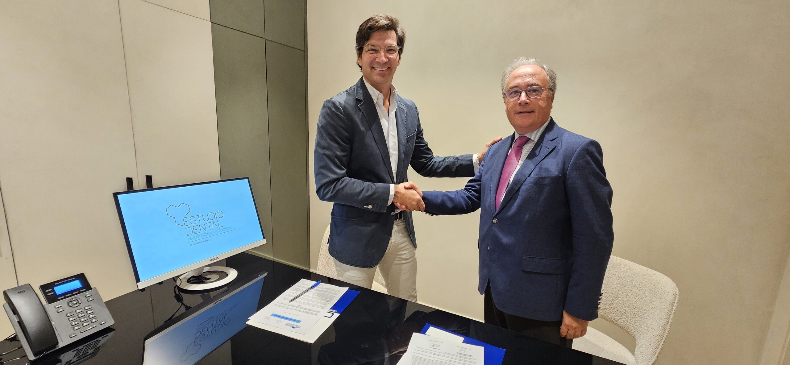 Eduardo López, y Antonio Díaz firman el convenio por el cual ORALPERIO, S.L. se incorpora a CECO como miembro asociado.