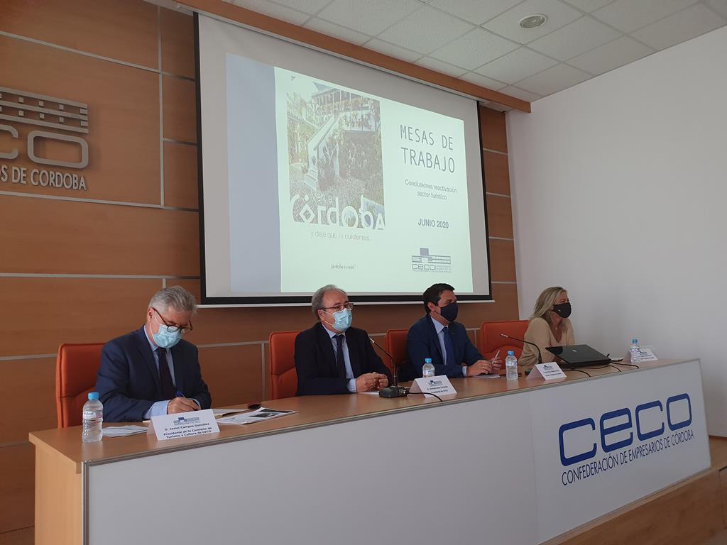 La Comisión de Turismo y Cultura ha presentado en el Centro de Formación, Iniciativa y Apoyo a la Actividad Empresarial de la Confederación de Empresarios de Córdoba de CECO el documento “Mesas de trabajo: Conclusiones reactivación del sector turístico”, elaborado por las cuatro mesas de trabajo (cultura y patrimonio, MICE, ecuestre y gastronómico), integradas por representantes empresariales del sector del turismo y técnicos municipales de varias delegaciones.