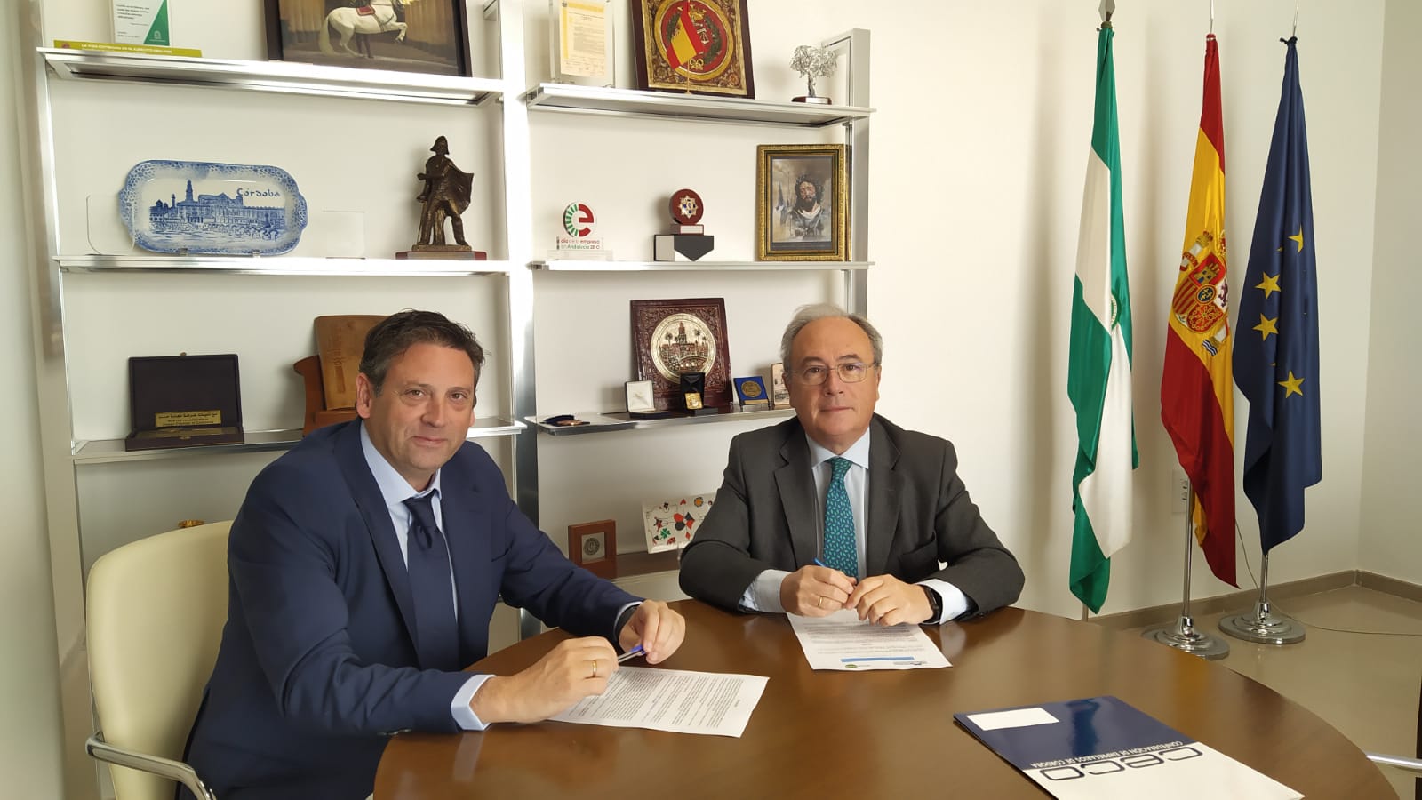 Antonio Díaz, presidente de CECO y Enrique Palacios, gerente de la empresa SOCIALODB, S.L.U. han suscrito el acuerdo por el que la empresa se incorpora a la Confederación de Empresarios como miembro asociado.